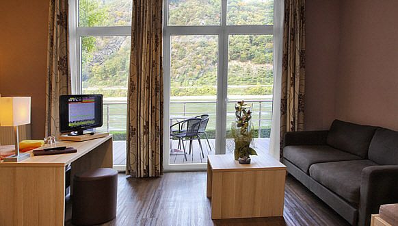 Alle Zimmer besitzen Rheinblick und einen eigenen bestuhlten Balkon oder eine Terrasse.